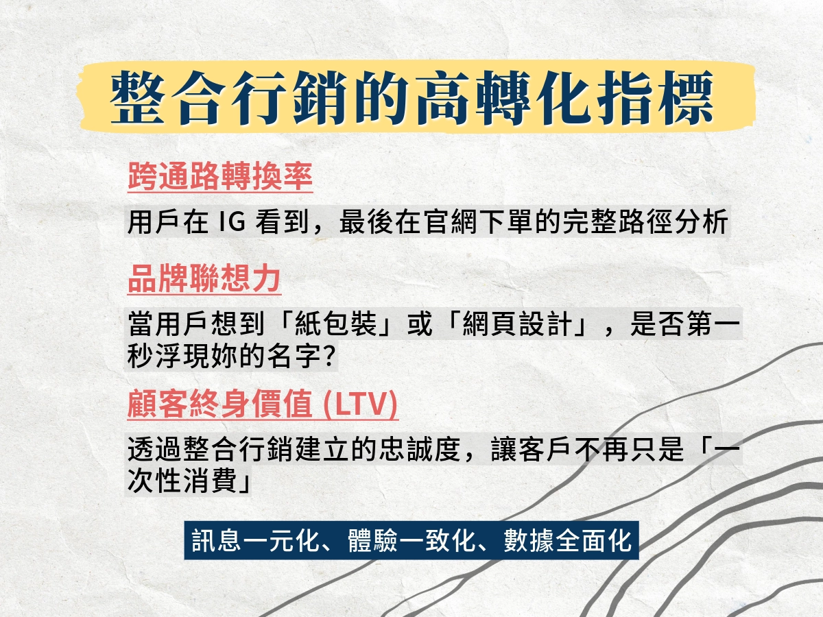 整合行銷是一個累積品牌資產的過程,每一篇文章、每一個影片、每一次廣告,都是在幫你的品牌一步一步建立出完整雛形,讓你的品牌有更高的信任感。