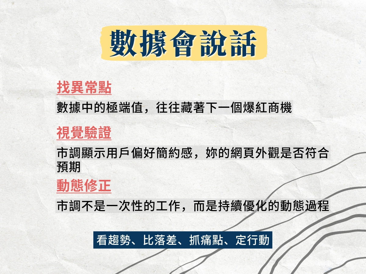 調查回答的是「市場長什麼樣」,分析回答的是「所以我該怎麼做」。