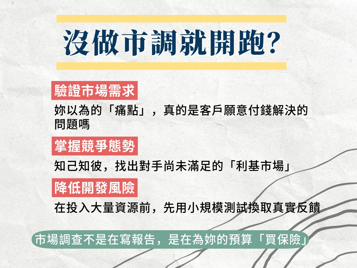 市場調查就是在回答三個問題:誰要買、為什麼買、還有誰在賣。