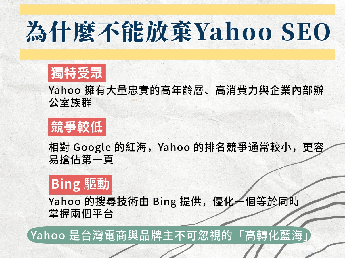 很多人直接把 Google SEO 策略照搬到 Yahoo,結果效果不佳。